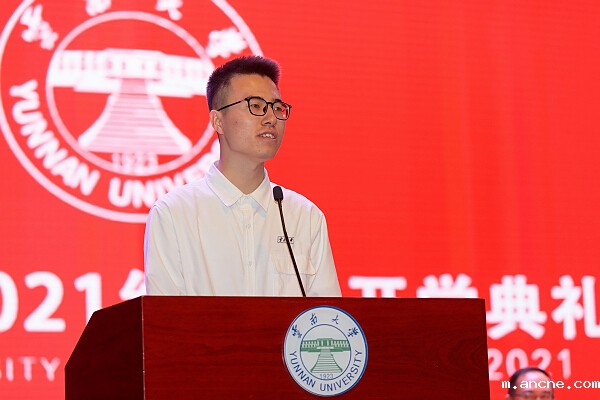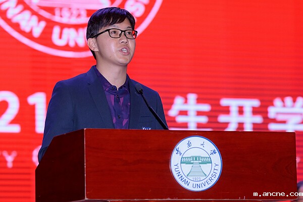 数学与统计学院2018级本科生周星旺代表本科生老生发言。他回顾了三年里在云大求学的点点滴滴,希望新生们恪守云大的精神和校训,以天生我材必有用的信心,拿出直挂云帆济沧海的勇气,去迎接人生风雨洗礼,为学校、为祖国的未来拼搏奋斗。