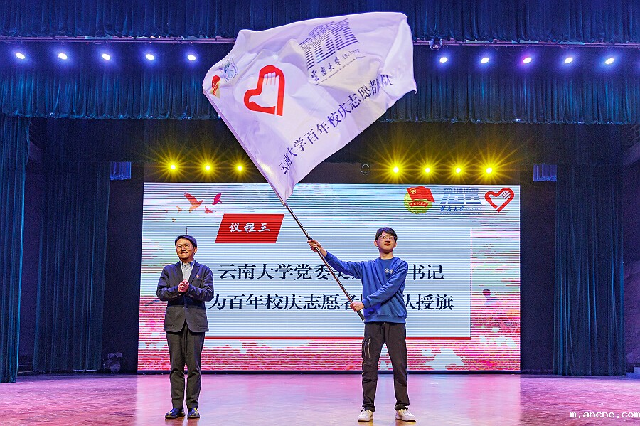 仪式上,吴建德为志愿者服务队授旗,参会领导和老师共同为志愿者代表颁发了百年校庆志愿者专属装备包和工作证,米兰国际官网百年校庆志愿者服务队正式上岗。旗帜飘扬,一递一接间,传递的不只是旗帜,更是为百年云大奉献青春的责任与使命。