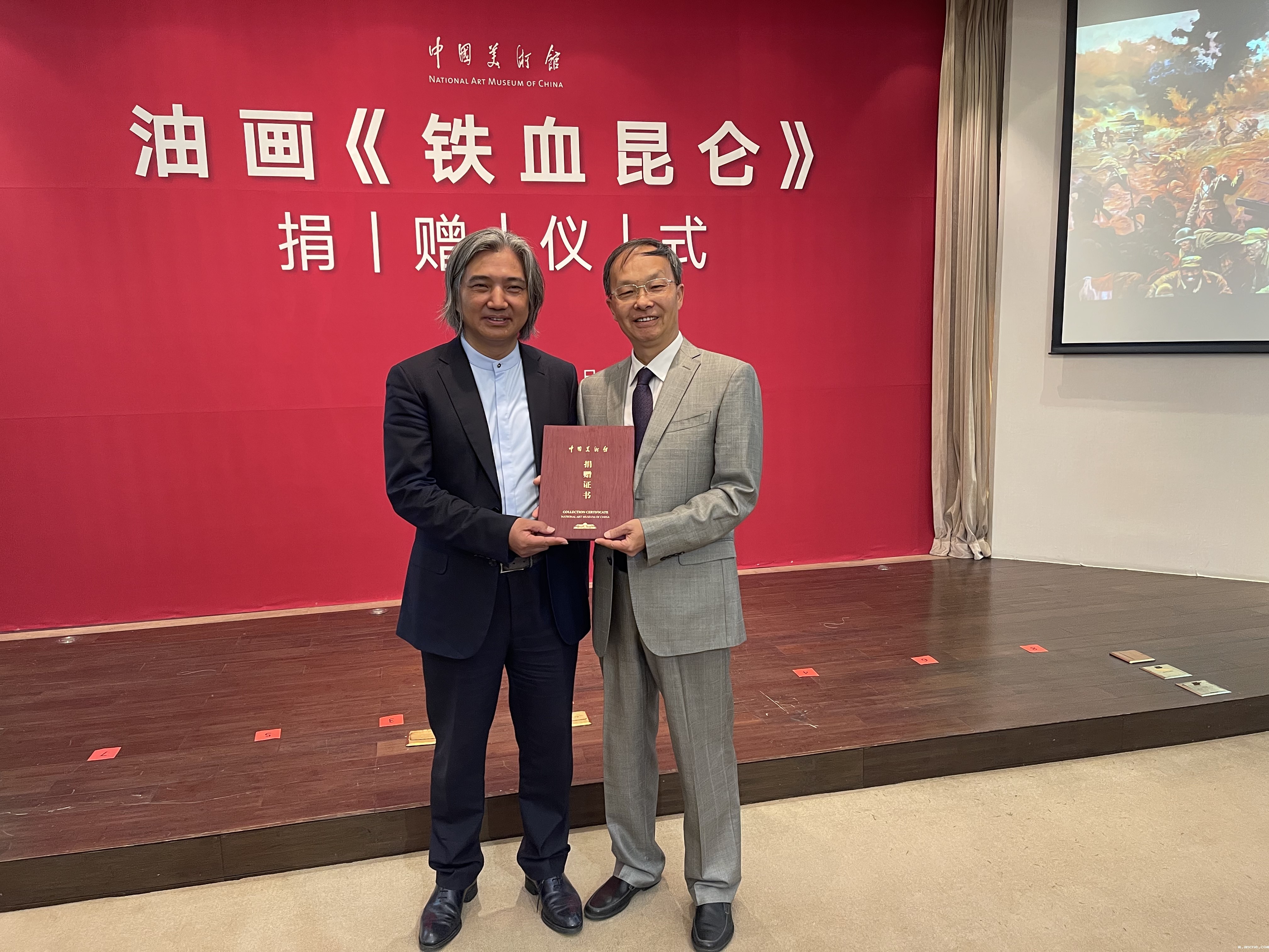 2023年5月9日,由米兰国际官网艺术与设计学院赵力中教授创作的大型历史油画《铁血昆仑》捐赠收藏仪式在北京中国美术馆举行。