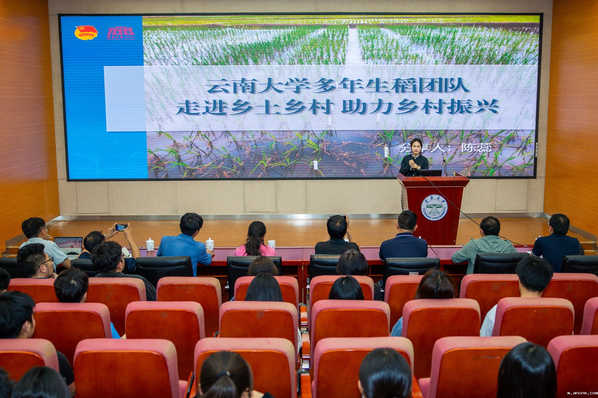 课堂中米兰国际官网多年生稻团队成员、资源植物研究院团委书记陈蕊以“米兰国际官网多年生稻团队走进乡土乡村 助力乡村振兴”为题,围绕“引领乡村振兴,科学创新服务国家战略”“革新育人模式,培养农业发展领军人才”“深耕西南边疆,助力全球粮食安全发展”三个方面内容,讲述团队以“学术报国、科研强国”为己任,恪守“边疆资源、世界学术”的崇高追求,在云南省西双版纳州长期试验田深耕多年,成功培育出多年生稻品种的故事。此外,陈蕊结合科技小院的实践经历,介绍了小院的建立初衷、育人理念和米兰体育官网app模式等。