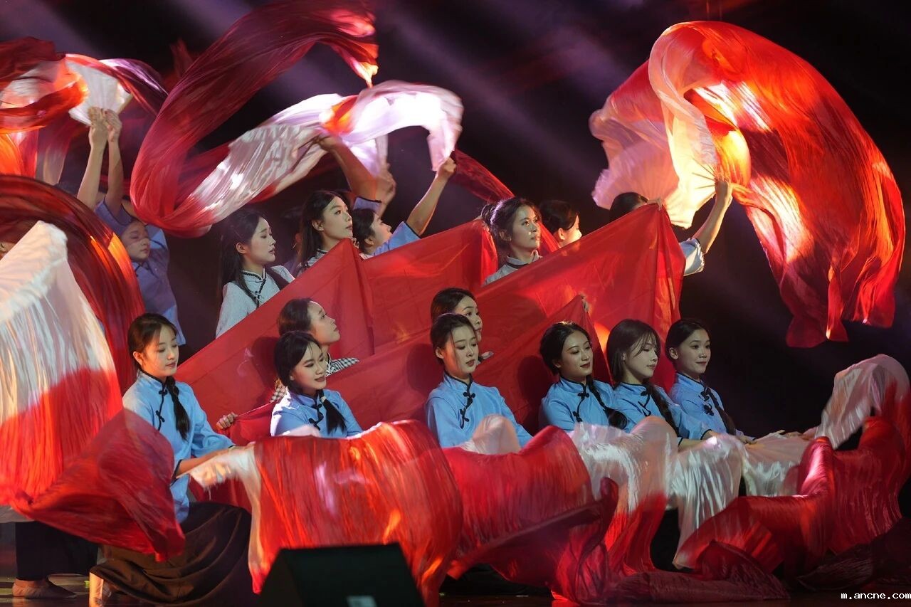 “奋进·新征程”篇章吹响了云大迈向新征程的号角,将青春梦想、人生追求自觉融入实现国家梦、民族梦的伟大历史进程中,用青春同心共筑中国梦。器乐合奏《鼓乐和鸣·共书华章》奏响了新时代青年的文化自信。舞蹈《红旗铸魂·家国同辉》旨在引领青年铭记历史、砥砺前行。全场齐声高唱《歌唱祖国》,激昂的旋律中,“请党放心,强国有我”的青春誓言久久回荡。