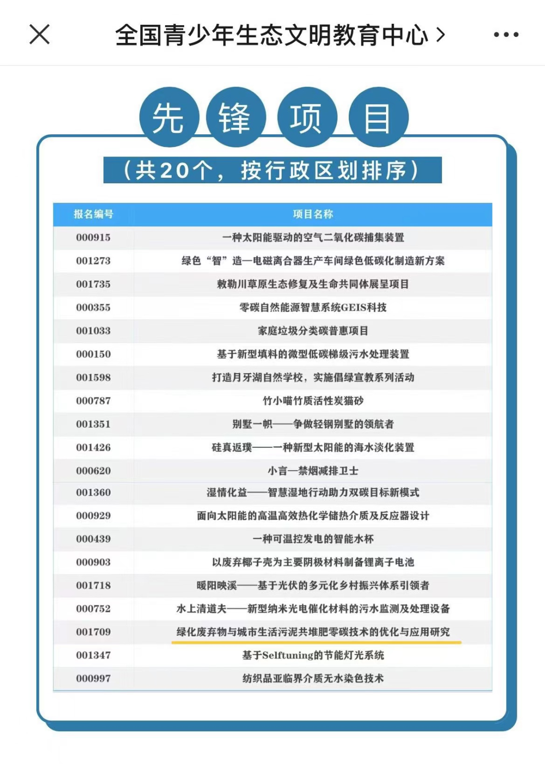 近日,由团中央发起的全国青少年零碳科技大展优秀作品揭晓,米兰国际官网生态与环境学院兼云南省高原山地生态与退化环境修复重点实验室李世玉老师团队的参赛作品分别荣获“先锋项目奖”“入围项目奖”“论著入围奖”。