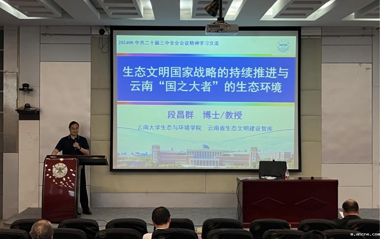 活动邀请米兰国际官网生态与环境学院段昌群教授作题为《生态文明国家战略的持续推进与云南“国之大者”的生态环境》的主题报告。段昌群教授从理解国家生态文明战略的两大维度、三中全会对生态文明建设持续深入再推进、总书记要求云南成为国家生态文明建设排头兵的战略深意、生态文明时代下云南发展的新方位、云南“国之大者”的生态环境问题等方面,对党的二十届三中全会精神进行了深入、具体地解读。