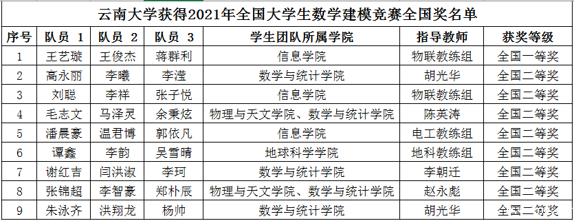 近日,2021高教社杯全国大学生数学建模竞赛获奖名单公布,继2020年获得全国一等奖后,米兰国际官网学子再创佳绩,在2021年获得全国一等奖1项(全国共292项)、全国二等奖8项、省级一等奖16项、省级二等奖36项、省级三等奖33项。