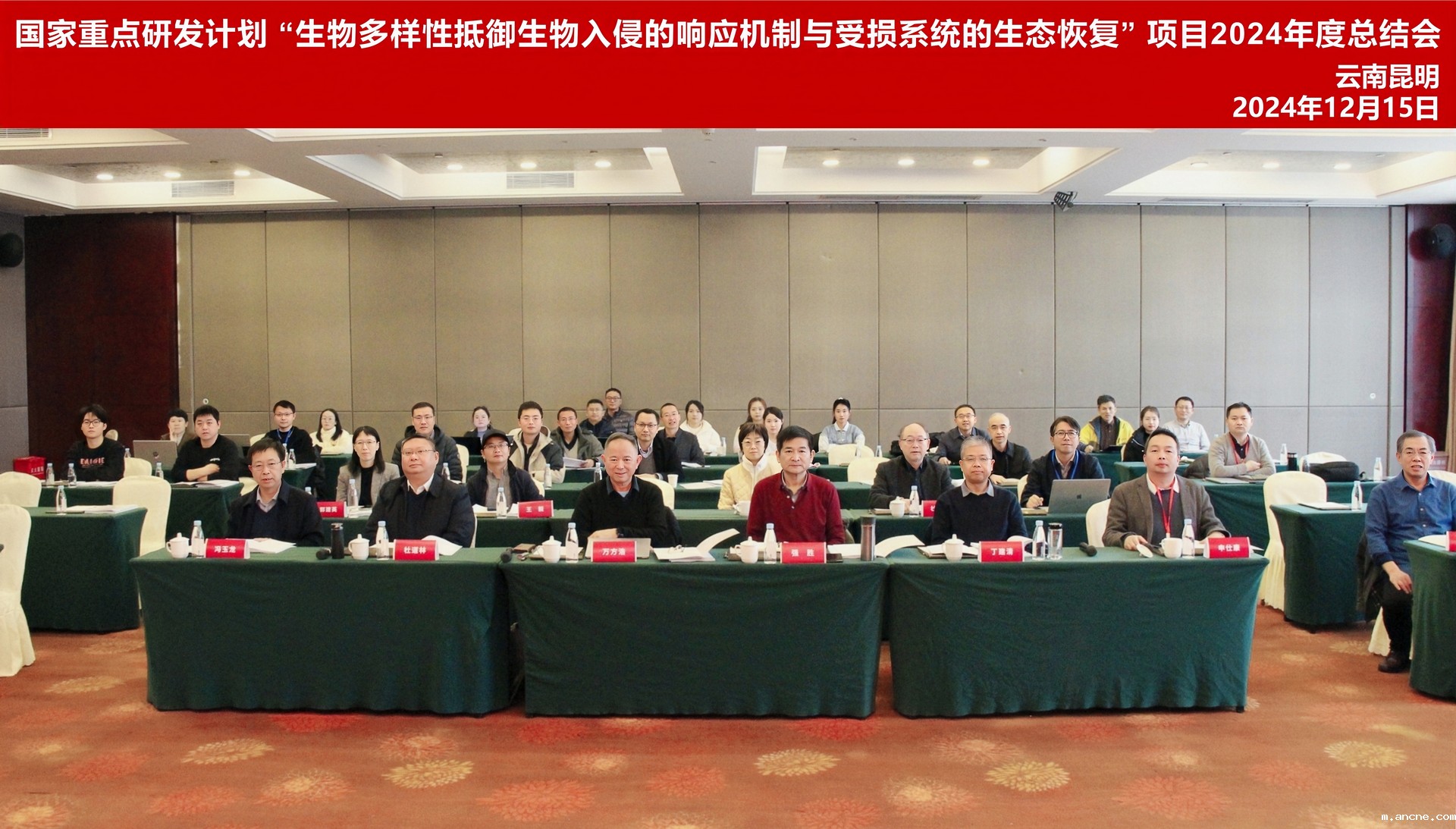 2024年12月15日,国家重点研发计划“生物安全关键技术研究”重点专项“生物多样性抵御生物入侵的相应机制与受损系统的生态恢复”(2022YFC2601100)2024年度总结会在昆明召开,会议以线上线下相结合的形式进行。