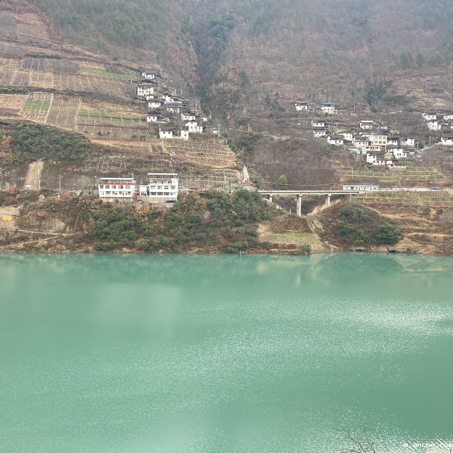 图2 半山腰上的德钦县下辖村茨中村,山脚下是澜沧江